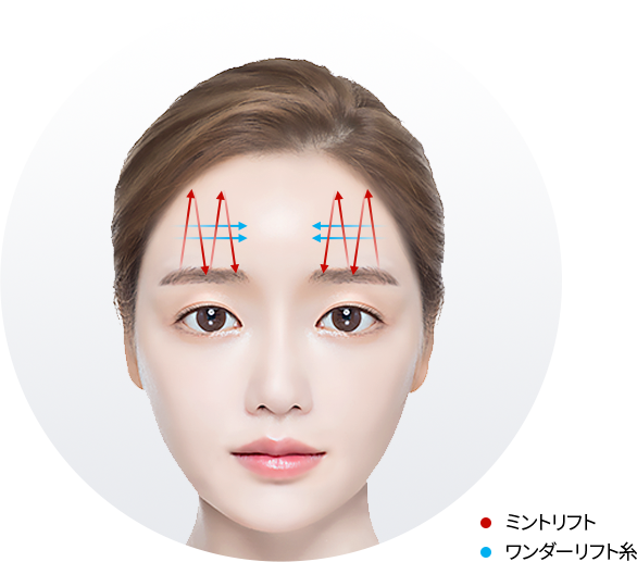 YOU&MEの額挙上リフトのワンダーリフト糸は1本の糸で3本の固定の効果を作り出す構造で少ない糸でも広い範囲を安定的に支えることができて糸を切りたり結んだりしなくて組織の損傷を最小限に抑えられます。なお、体内で徐々に溶解される過程でコラーゲンの生成が誘導されてたるみの改善と同時にハリの向上まで期待できます。